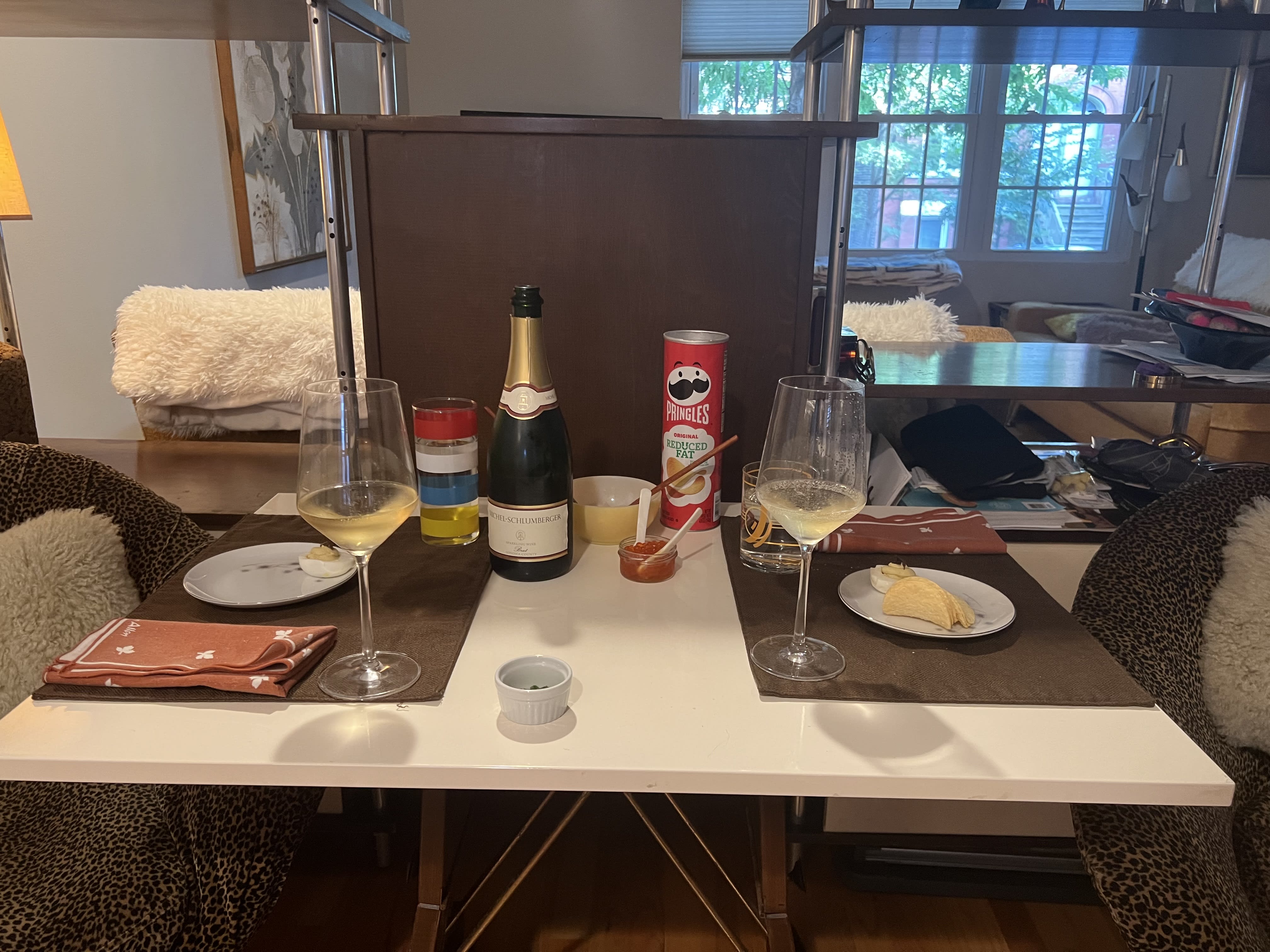 Back to the wine—this was a total sweet spot for us. We paired it with figs, prosciutto, blue cheese, Pringles, salmon roe caviar, and even French onion dip. First sip was complex, with fine bubbles and a dry finish. As it warmed in the glass through our refill approach, it just kept getting better. This Blanc de Blancs may have seen a touch of oak, adding nice depth.