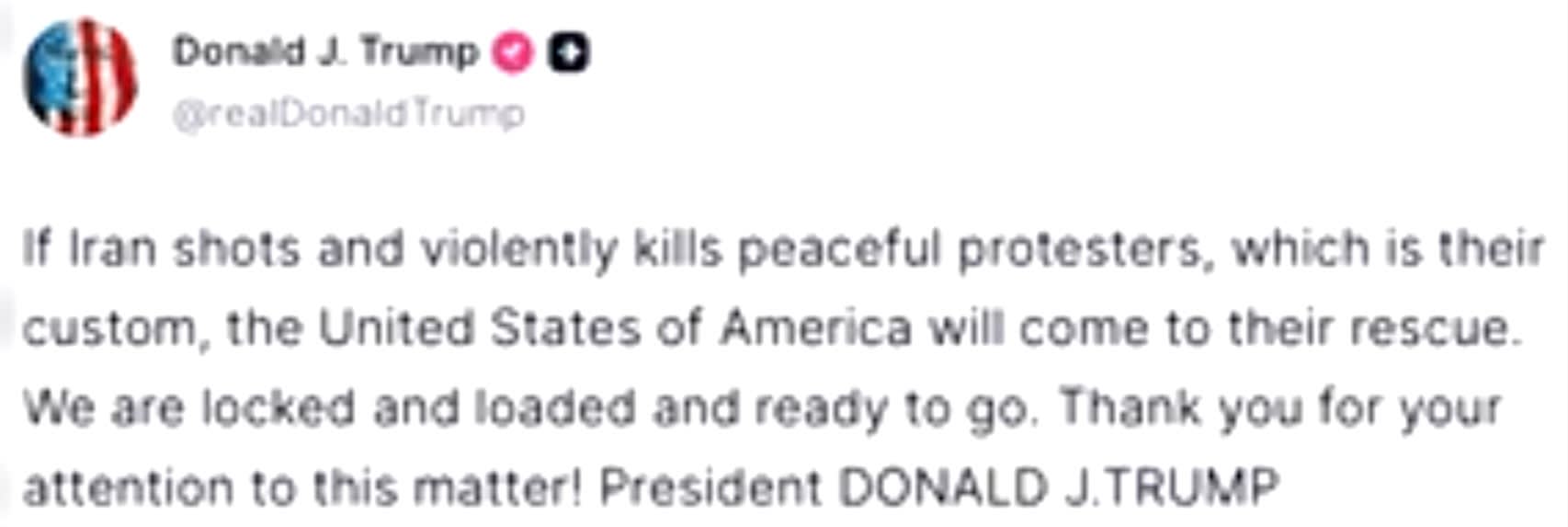 Keep in mind Trump recently threatened Iran for killing peaceful protesters. Oh the irony…