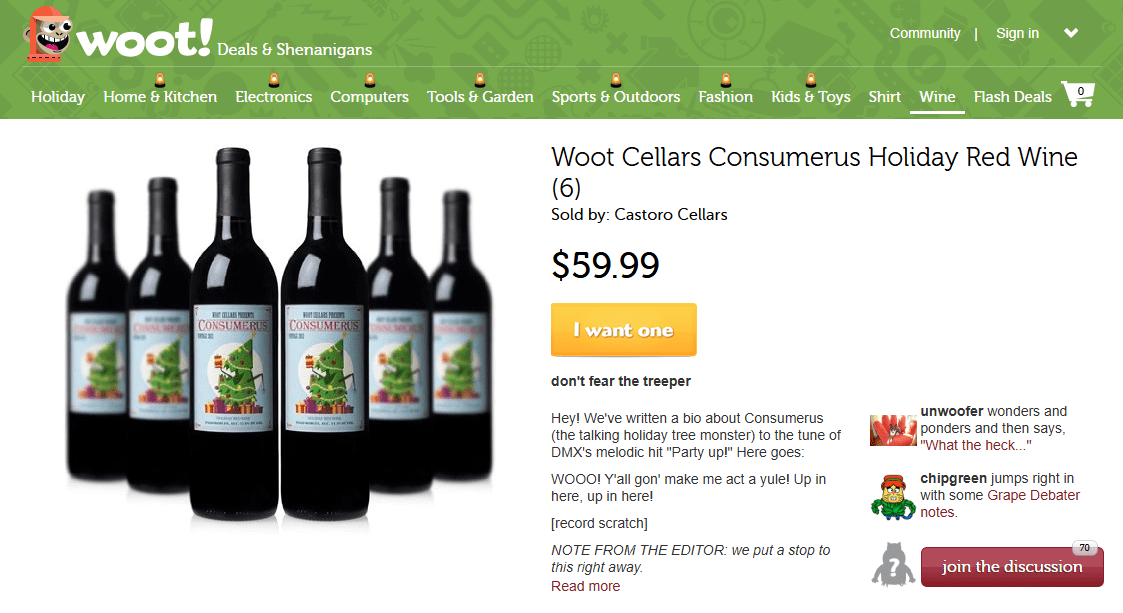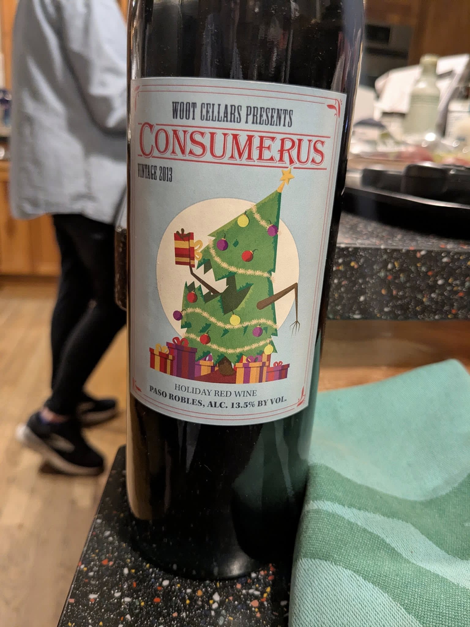 This is the “bottle of collectable Woot Cellars wine (mainly for display purposes, it’s been a while)” that came with my order from the Mystery Warehouse Wine Cleanout Part II back in May.